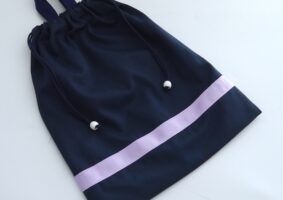 巾着型 上履き入れ(ネイビー&ラベンダー)