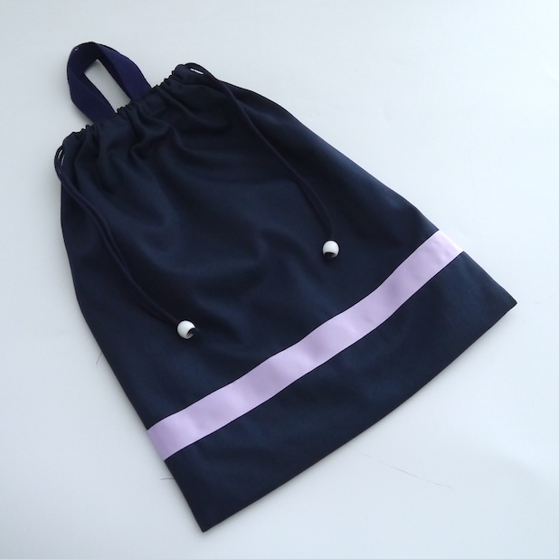 巾着型 上履き入れ(ネイビー&ラベンダー)